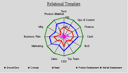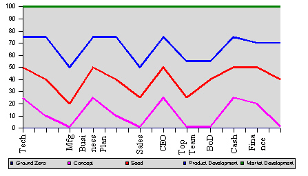 - very difficult. Market Development: sales, market calibration, market expansion, steady state. Steady State: systems refinement and strategic planning. Subsequent cycles of Product Development and Market Development. We are principally focussing on Market Development/Steady State scenarios. The diagnosis checklist reveals elements of risk throughout the businesses. If unacceptable risks are revealed an opportunity would not be pursued. Normally, risks are clearly identified allowing stakeholders to reduce risk and plan for challenges. The checklist is comprehensive, covering many dimensions. Twelve performance dimensionsArranged into four groups:Technology/Product/Manufacturing Business plan/Marketing/Sales CEO/Top Management/BoD Cash/Financeability/Operations and Control Rules for evaluationSeries of questions answer yes or no or pay now vs pay later. Specific questions that can get yes/no answer. Degree of criticality to success or moving to next stage. The Diagnostic ChecklistThe checklist is provided in spreadsheet format to enable easy use. It is offered in .sxi format (downlaod openoffice.org free). (A .jpg graphic is given here, but editing this would be difficult.) IllustrationDiagnostic chart illustrating different stages of business evolution.