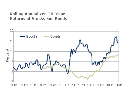 was roughly double the long-term average return from stocks. From 1872–2001,