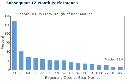 The median 12-month equity return following the end of a bear market has