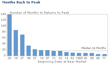 average bear market lasted 13 months, the average time to return to the