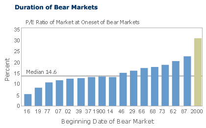 any prior bear market. The average P/E ratio for the 130-year period was