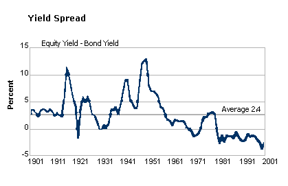 yield spread has averaged 2.4 since 1901. Since 1980, however, the yield