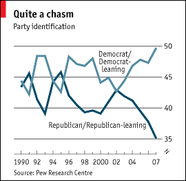The problems in the US are not making people happy as life-long Republicans change their stripes simply in protest at the way their savings are disintegrating and the national morality is compromised by an administration that has diverted resources from the needy to the rich (helping fund managers and banks, not subprime borrowers), from health care to war and from administration to cronyism (attorney general Gonzales being the soap opera in August).