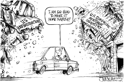 There seems to be a general deterioration in US infrastructure - transportation, housing, health and education - likely caused by a consumption-driven and debt-driven culture at risk of spending itself into illiteracy and impotence in the global sphere. Let's talk about what we've been spending our money on - burgers, coke and guns instead of roads and health.
