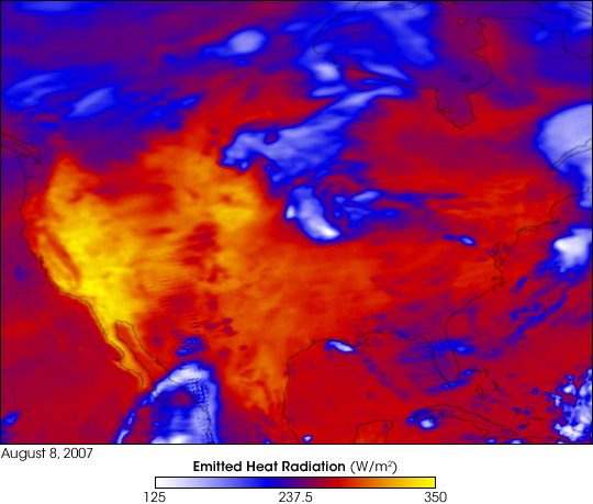 Here's a cool picture of the US heatwave continuing in August here. Also on that page is a handy explanation of how weather patterns are changing.